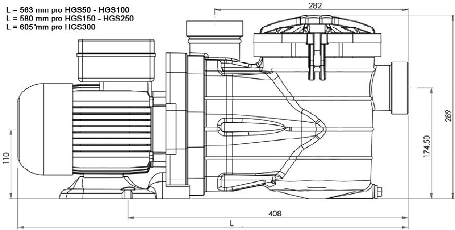 Samonasávací čerpadla díky velkému předfiltru s excentrickým vývodem. Robustní tělo čerpadla z polypropylenu, zesíleného skelným vláknem, zajišťuje velmi tichý chod a nasávací výšku až 2 m.