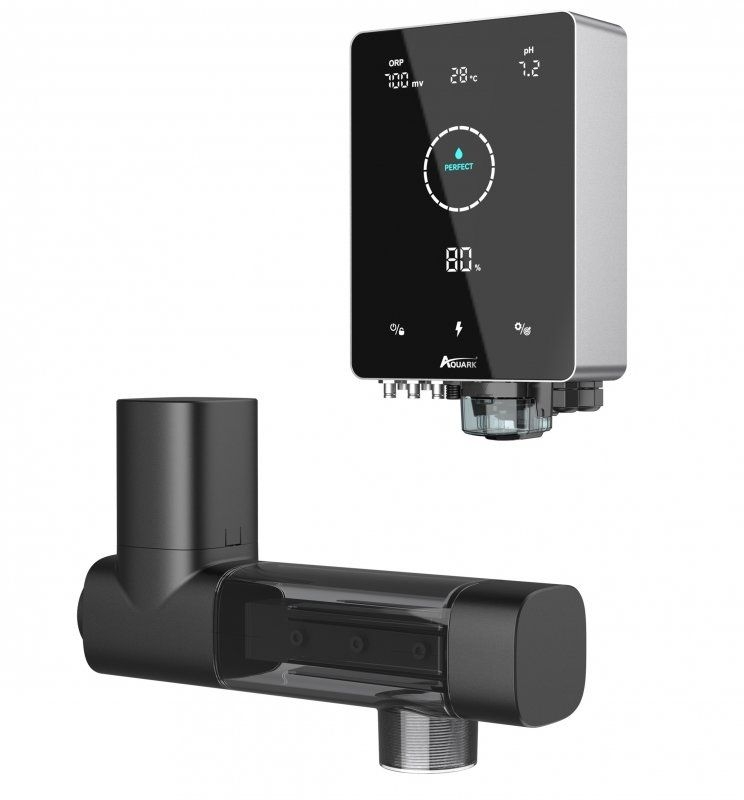 Průtoková cela integruje vlastní elektrolytický systém společně se vstřikovačem pH roztoku, držákem senzoru a průtokovým čidlem. Má kompaktní tvar a snadno se instaluje.